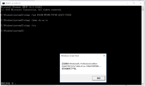 打开命令提示符窗口,依次输入以下命令,激活Windows 10专业版系统,