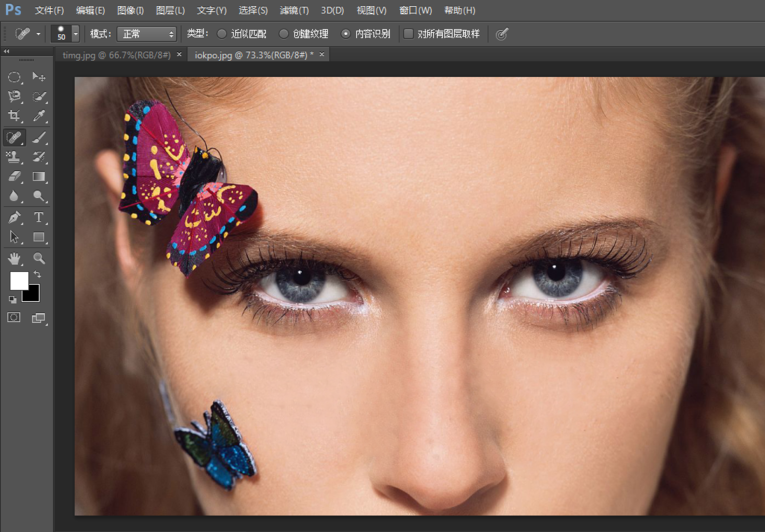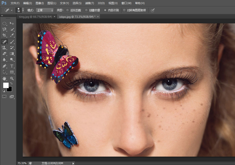 很多妹纸在发自拍照之前都会修修图,毕竟要展示自己的完美形象,即使脸上有一些斑点也无妨,我们可以利用PS污点修复工具进行消除美化,方法如下。