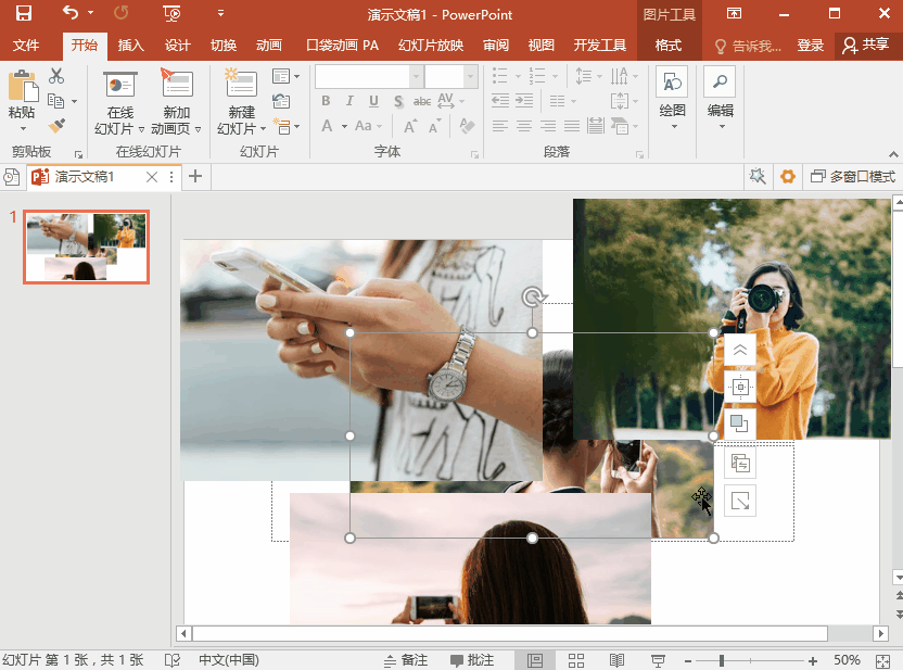在幻灯片中插入了多张图片,为了排版好看,需要调整图层顺序,你可以直接按【Ctrl+shift+] / [ 】,就能调整上下图层的位置,是不是很方便呢?