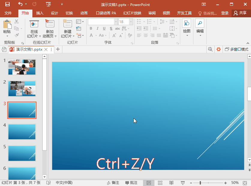 制作PPT过程中经常用到撤销功能,如果你对某个页面不满意,需要来来回回撤销!小编告诉大家一个快捷键组合,【Ctrl+Z】与【Ctrl+Y】,撤销、反悔撤销,随你便!