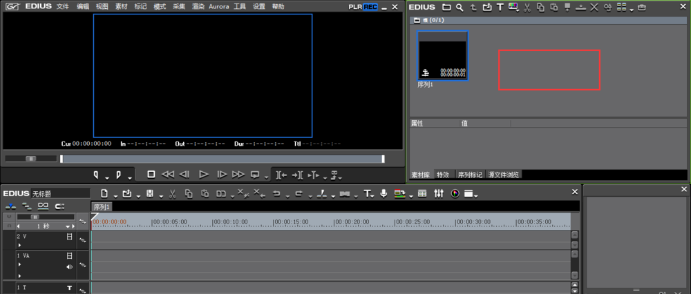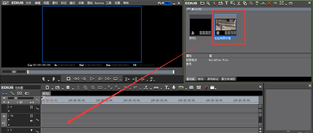 打开EDIUS软件,在素材面板空白处用鼠标双击,导入视频文件,