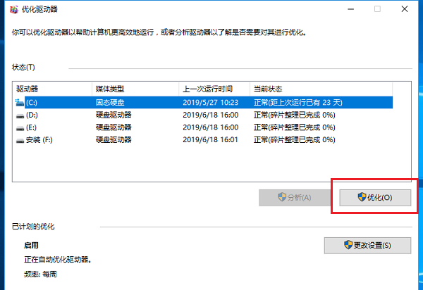 C盘优化完成,我们还可以对其他驱动硬盘进行碎片整理,如图,