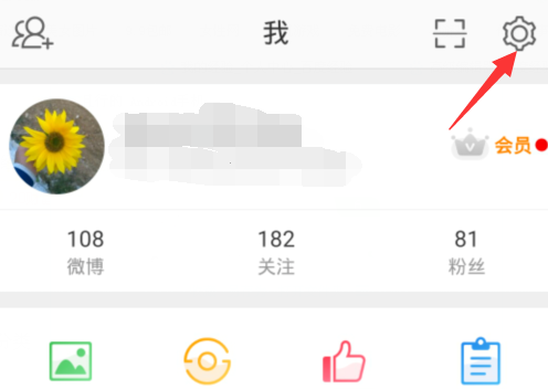打开手机微博,进入界面,点击【我】,然后点击设置按钮,