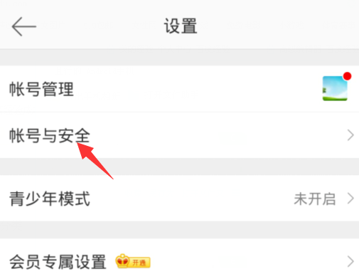 进入设置界面,点击【账号与安全】选项,