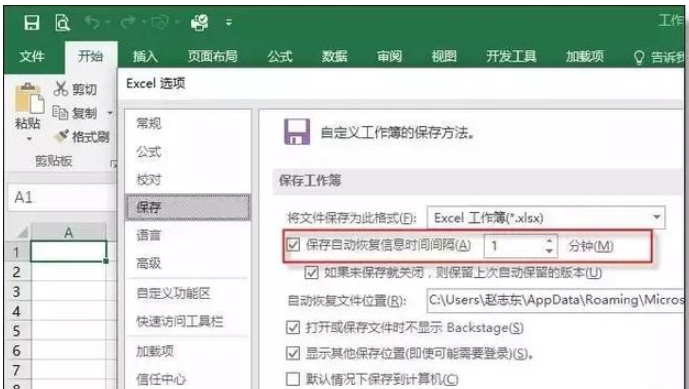 不急,打开一个Excel工作簿,点击【文件】——【选项】——【保存】,复制自动保存的路径,粘贴到文件夹地址栏,按回车打开。找到恢复的文件(Excel文件名+数字串构成的文件夹名),打开备份的文件,显示的是未保存前的格式,点击【还原】按钮,文件成功恢复!
