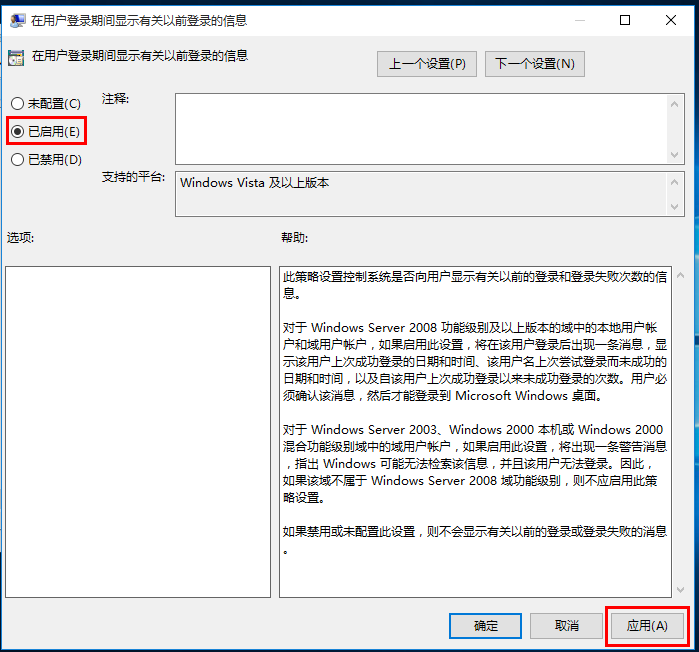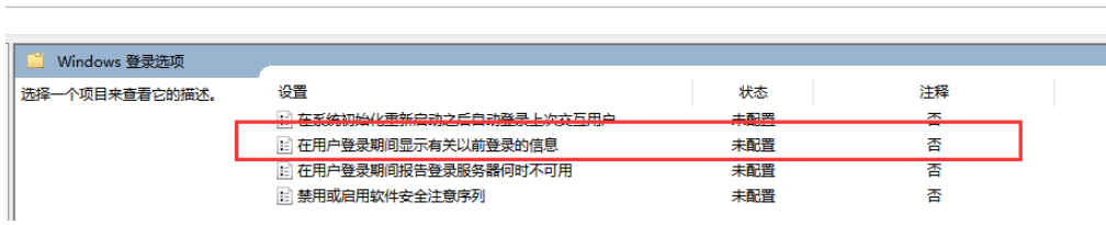 双击【Windows登录选项】,弹出界面,点击【在用户登录期间显示有关以前登录的信息】,
