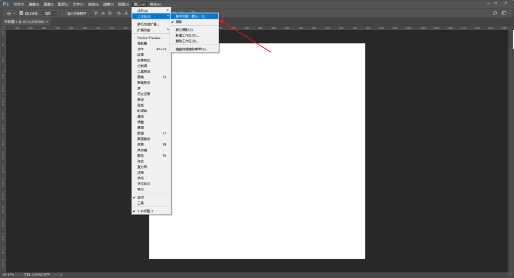 如图,PS面板中的工作区被删除了,应该如何恢复呢?