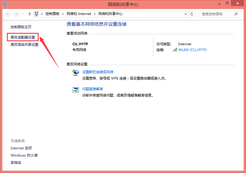 进入界面,点击【更改适配器设置】,