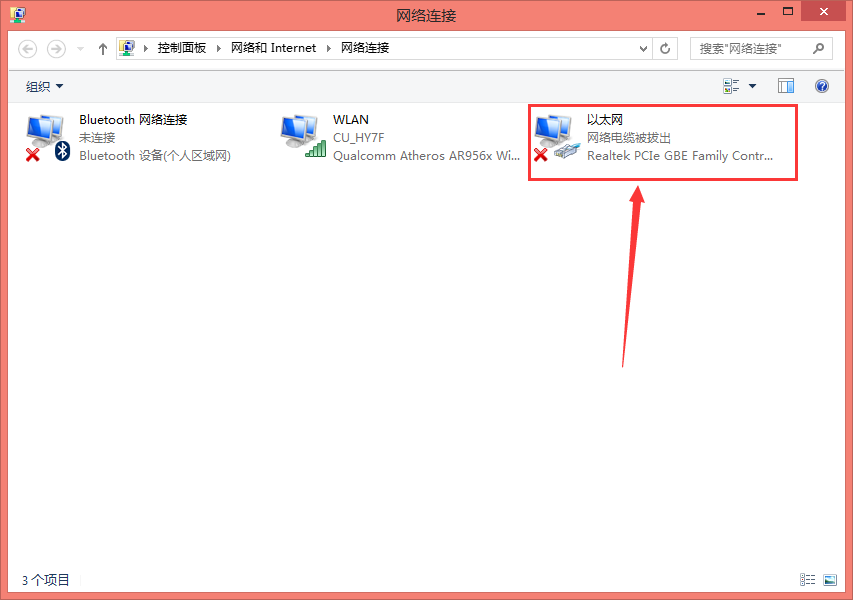 如图,鼠标双击【以太网】选项,