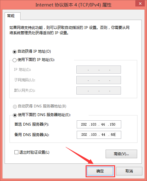 进入TCP/IP协议属性窗口,勾选【使用下面的DNS服务器地址】,在输入框中输入图中链接,点击确定。