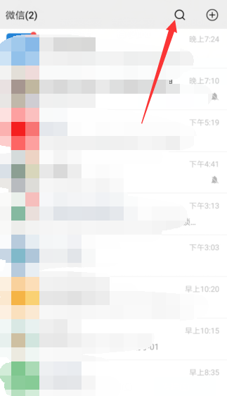 打开手机微信,进入界面,点击上方的搜索按钮,