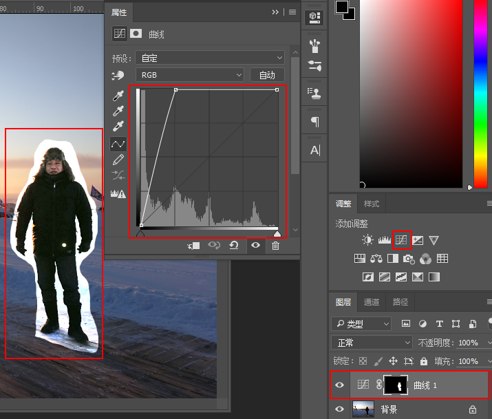 然后使用方法一中的“曲线调整图层”,进行调整即可。