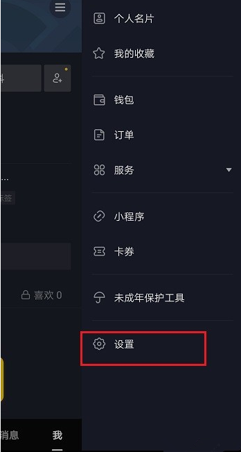 打开抖音APP,进入界面,点击【我】,向左滑动,点击【设置】,