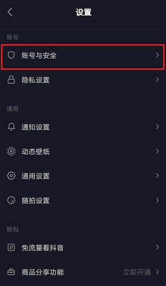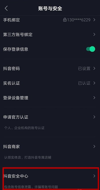 进入账号与安全界面,点击【抖音安全中心】,如图,