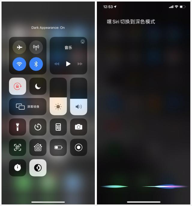 第二种,用Siri控制,说出「切换到深色模式」的指令就可以切换,速度挺快。