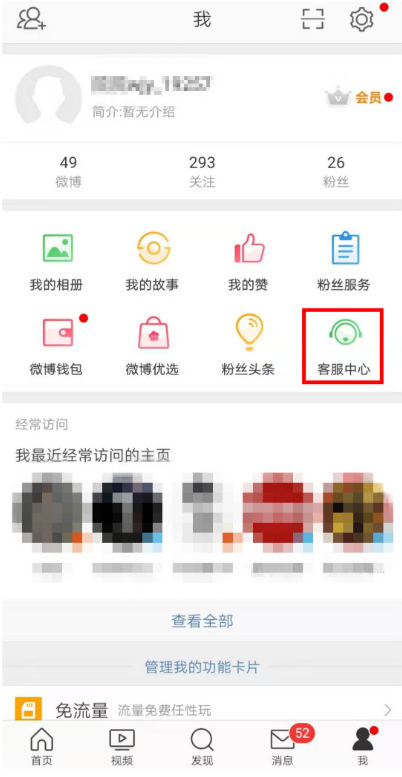 进入个人主页,点击【客服中心】,
