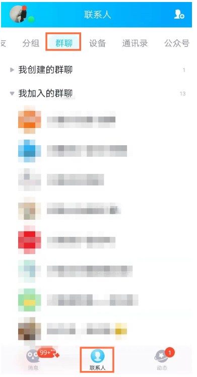 打开手机QQ,进入界面,点击【联系人】——【群聊】,
