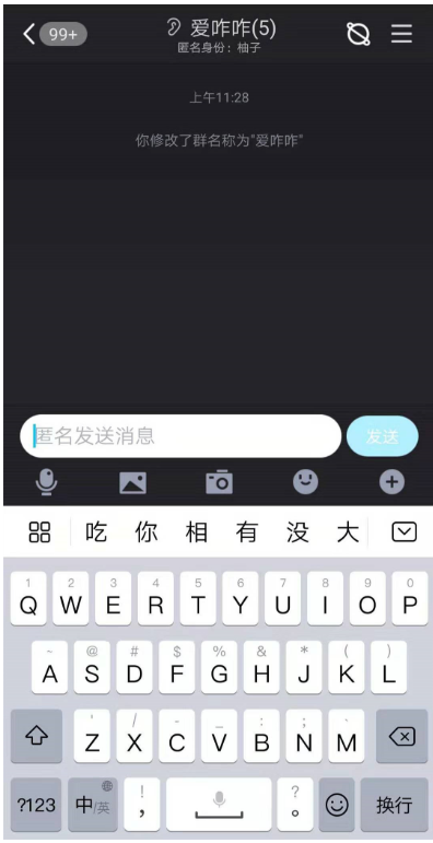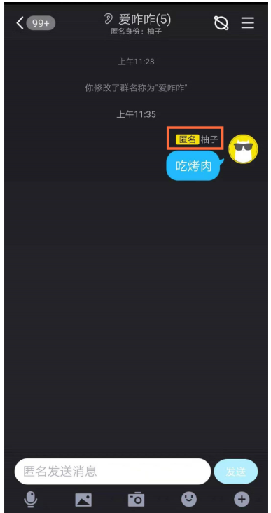 如图,界面颜色改变了,你的匿名身份是柚子,