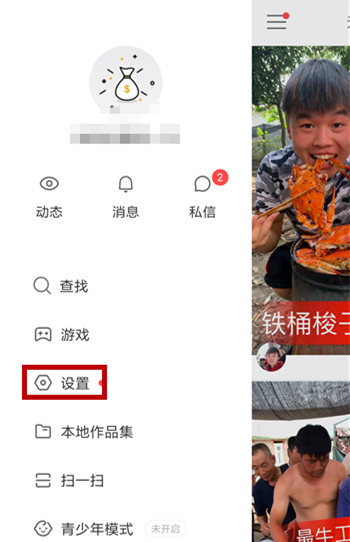 打开快手APP,进入界面,点击左上角的图标,然后右滑界面,点击【设置】选项,