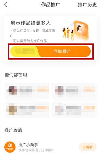 进入如图界面,在顶部点击【立即推广】,