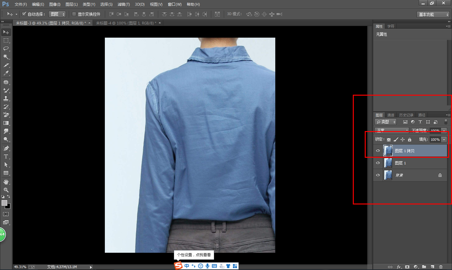 如图,点击打开【图层1拷贝】的眼睛,并选中该图层,
