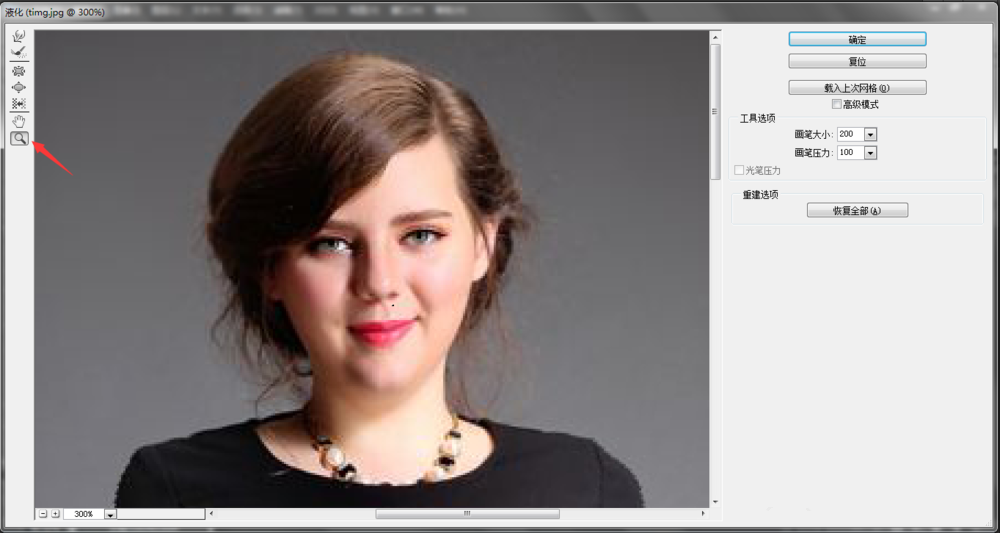 接着调整人物头部,使用放大工具放大头部,