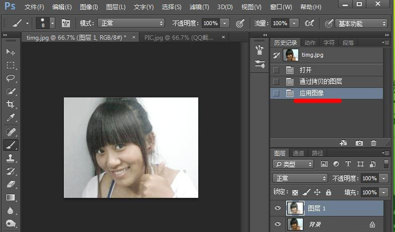 在菜单栏中点击【图像】——【应用图像】,弹出窗口,
