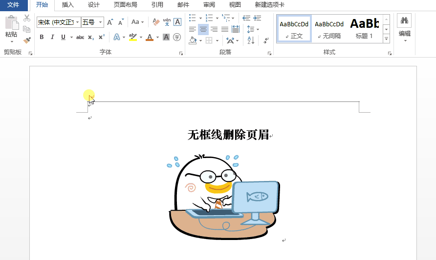 最后介绍一种方法,通过去除框线来删除页眉横线。