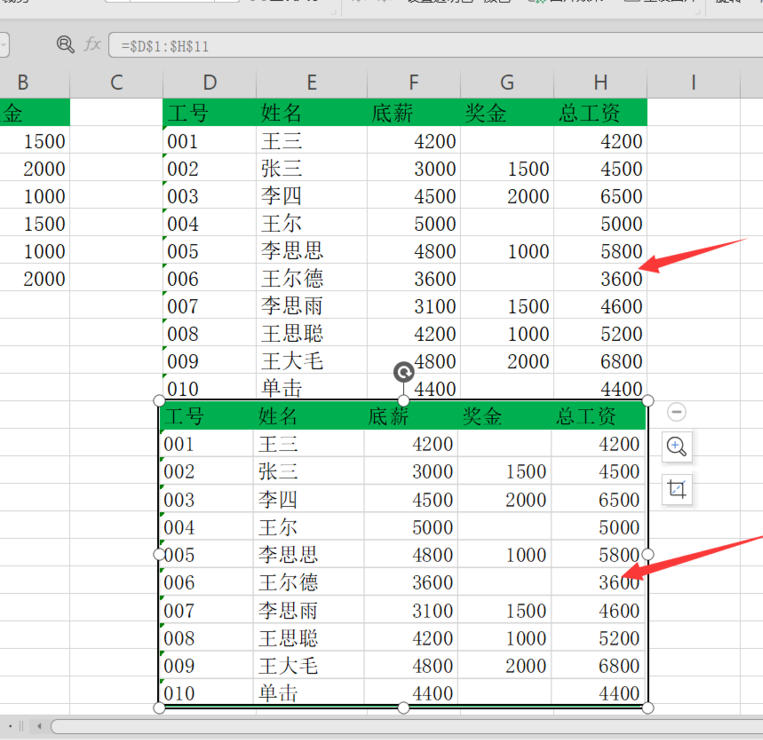 然后选中单元格数据,点击照相机按钮,可以看到下方出现了一个图片,