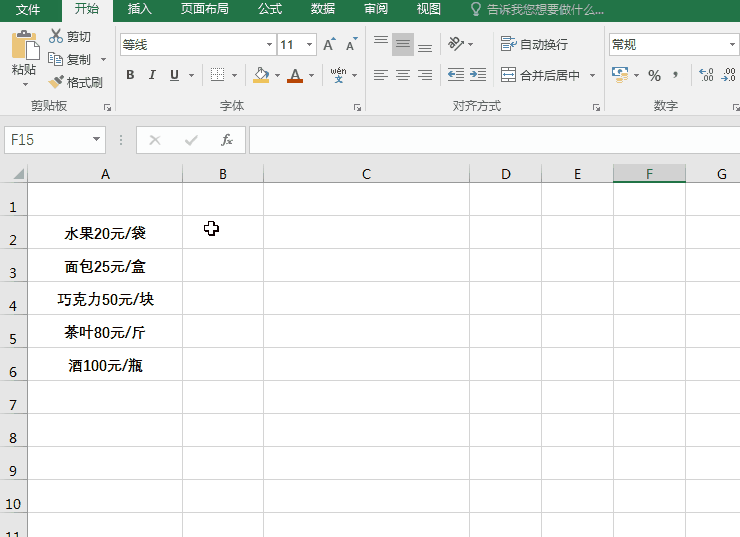打开Excel表格,如图,我们需要对A列单元格中的数据进行拆分,使用快速填充就显得非常简单了,它可以实现一键拆分数据。
