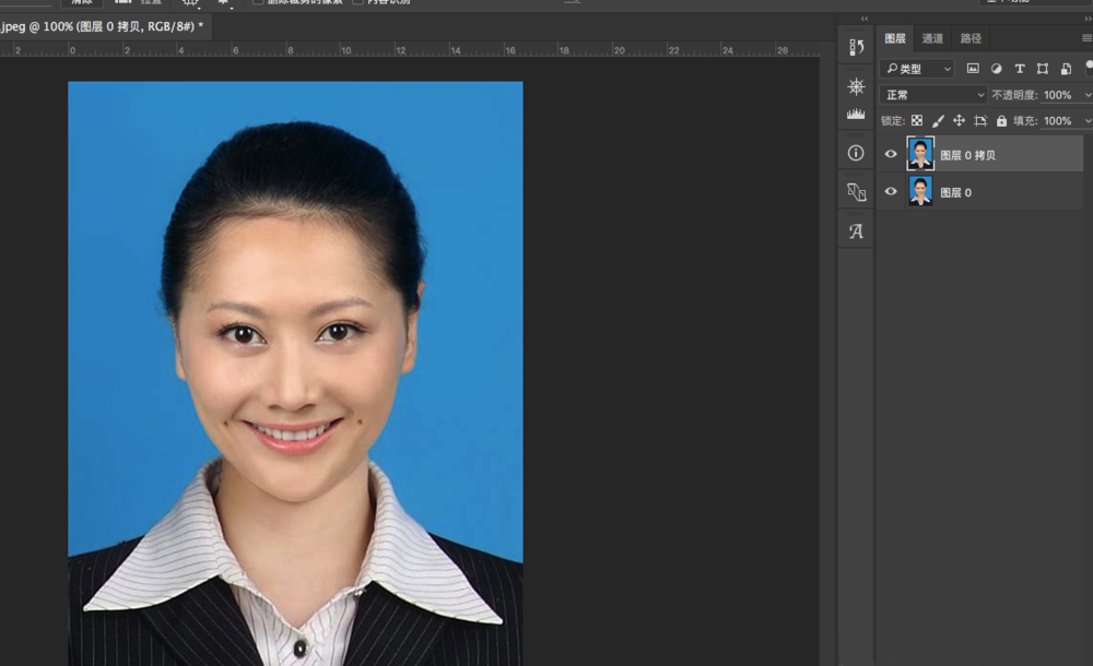 打开Photoshop软件,导入证件照,按快捷键【ctrl+j】,复制图层,