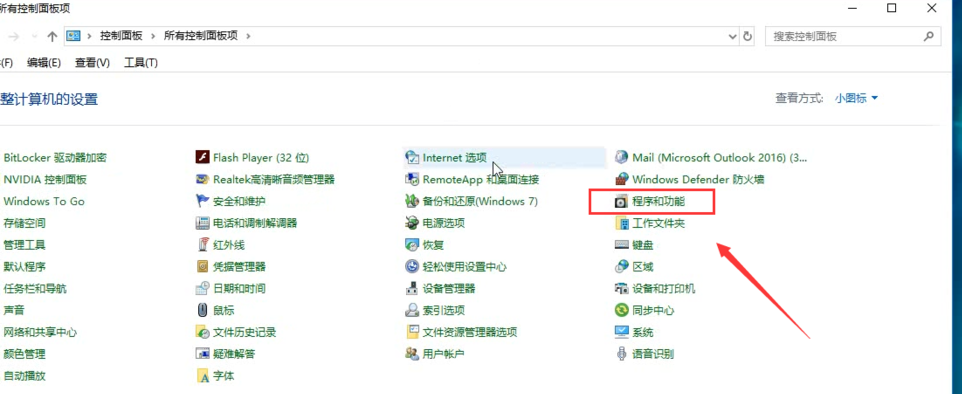 打开控制面板,进入界面,点击【程序和功能】,