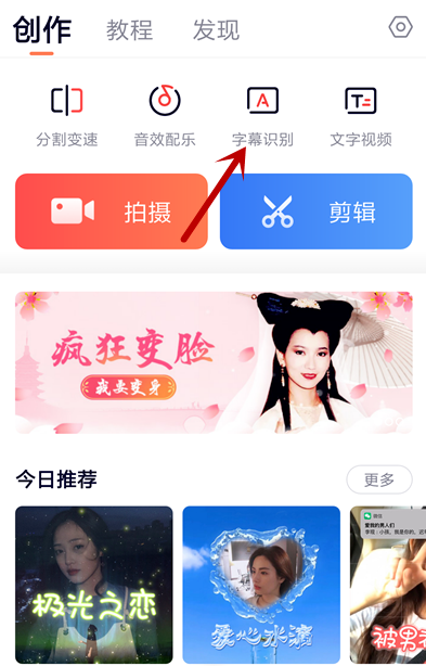 打开快影APP,进入主界面,点击【字幕识别】功能,