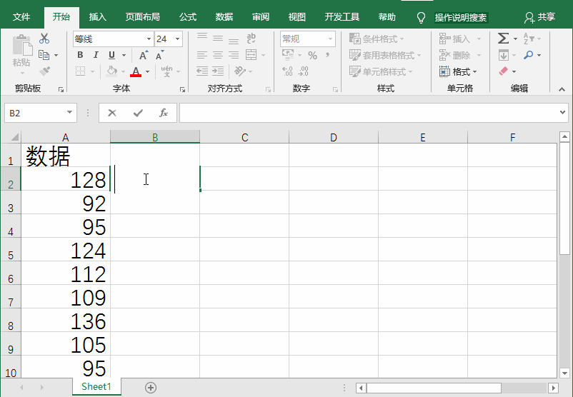 1、选中B2单元格,在菜单栏中点击【开始】——【编辑】,点击【Σ】旁边的倒三角图标,然后点击【其他函数】,