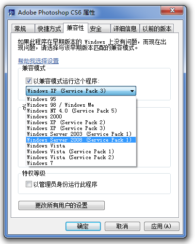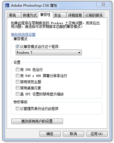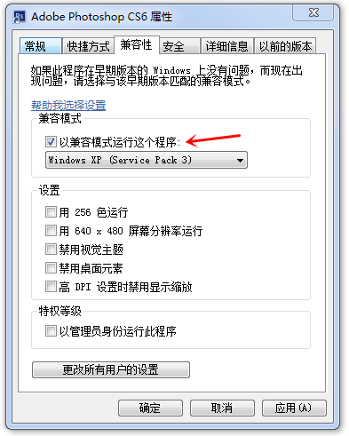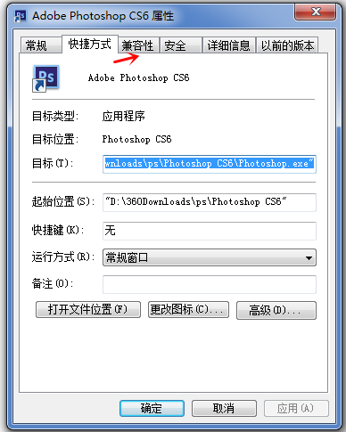 进入Adobe Photoshop CS6属性窗口,在上方点击【兼容性】,