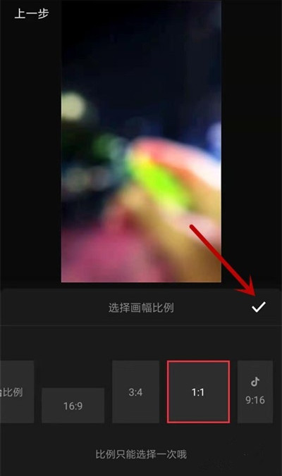 选择视频的画幅比例,点击【√】,注意,只有一次选择机会,