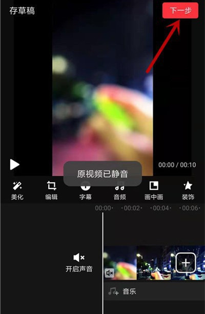 开启静音,出现【原视频已静音】提示,进行下一步,