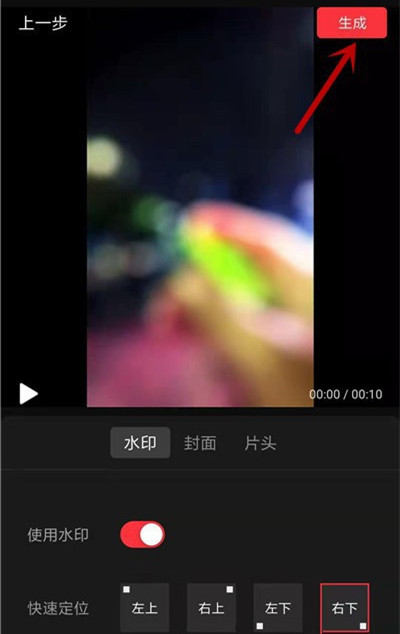 进入水印设置界面,选择水印位置,点击【生成】,