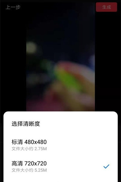 然后选择视频清晰度,点击【生成】,