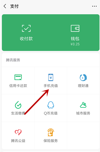 返回到微信支付界面,即可看到手机充值功能,现在可以充话费了。