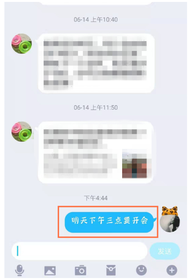 打开手机QQ,进入界面,随意点击一个聊天对话框,对指定的文本消息进行双击,如图,
