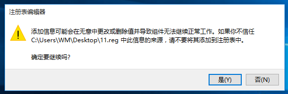 出现提是,询问是否将其添加到注册表中,点击【是】,