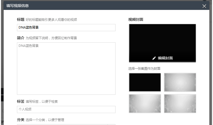 如图,输入视频标题、视频简介,也可以添加封面,
