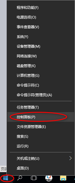 鼠标右击桌面左下角的Windows图标,点击打开控制面板,