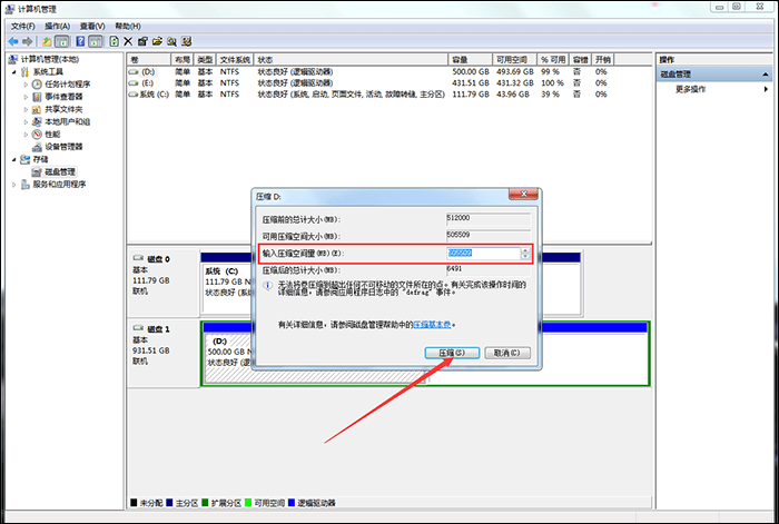 3、弹出压缩对话框,在【输入压缩空间量】一栏中设置压缩空间,然后点击【压缩】,