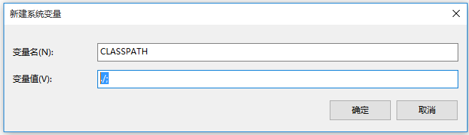 点击【高级】——【环境变量】——【系统变量】——【新建】,变量名为【CLASSPATH】,变量值为【./;】,