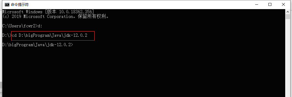 如图,切换到jdk安装目录,命令为:cd 路径,