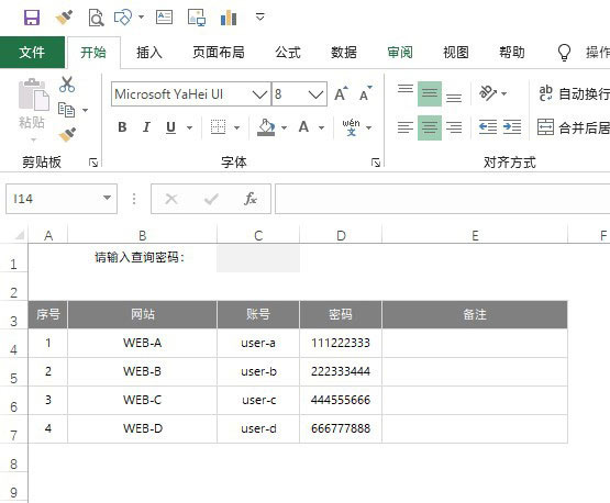 1. 新建一个空白表格,将要记录的账号和密码预先填写到表格中;