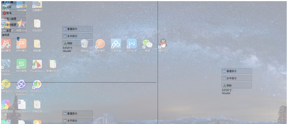 点击【垂直拆分】,任务窗口会显示在桌面左右两侧,