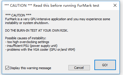 弹出提示,点击GO,软件开始烤机,